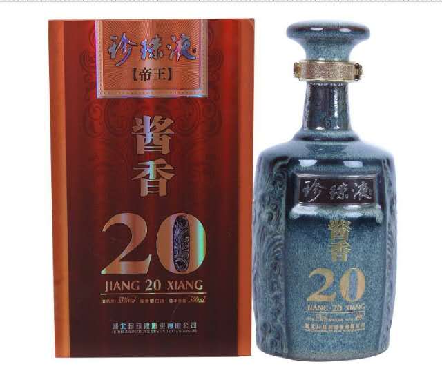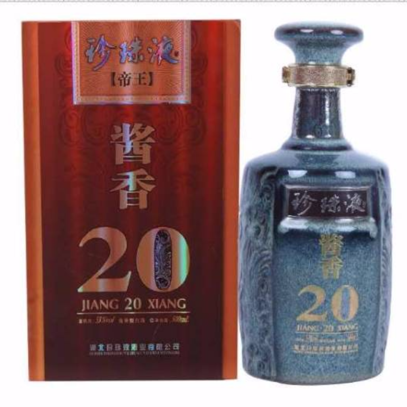 53%VOL酱香型珍珠液帝王20酒具有酒色微黄透明,酱香突出,幽雅细腻,酒体醇厚,后味悠长,空杯留香持久。