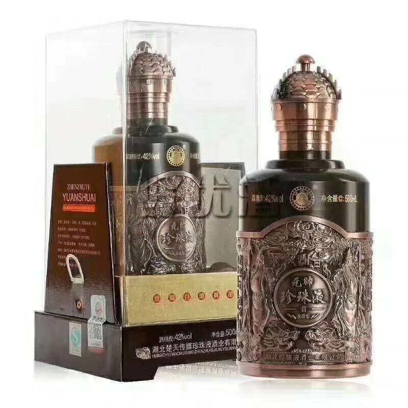 42%VOL珍珠液元帅酒具有无色透明,窖香浓郁,绵甜醇厚,香味谐调,尾净爽口。