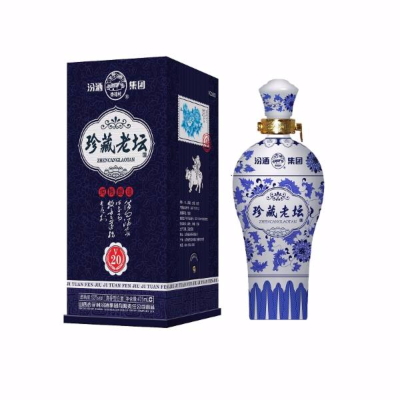 汾酒集团个性化品牌—珍藏老坛酒,采用传统工艺酿造,清香纯正,醇香柔和,瓶型采用景德镇青花瓷,高端大气,是商务用酒的**。