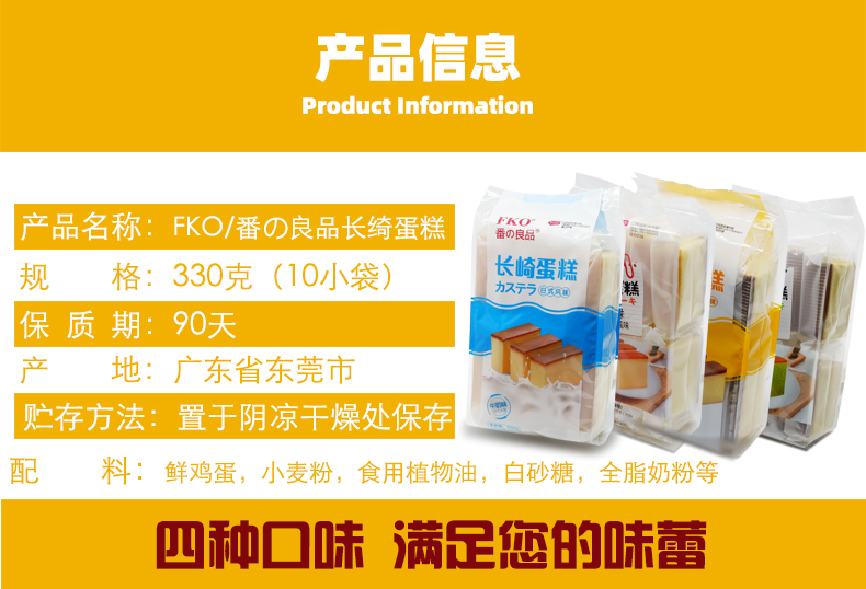 FKO番の良品长崎蛋糕早餐糕点面包330g包装
