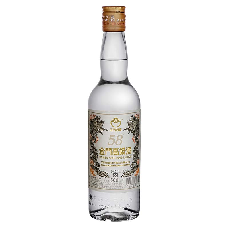 0.5L-58度金门高粱酒-白金龙:经典款58度金门高粱酒,系采用特殊固态发酵原理,遵古法精酿而成,清若泉水,香如幽兰,味赛甘露。