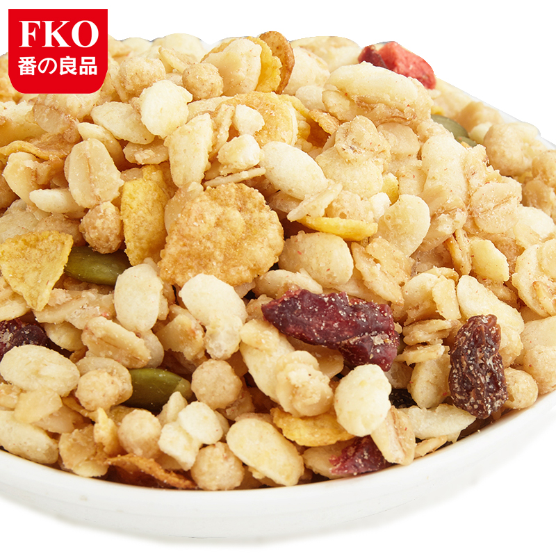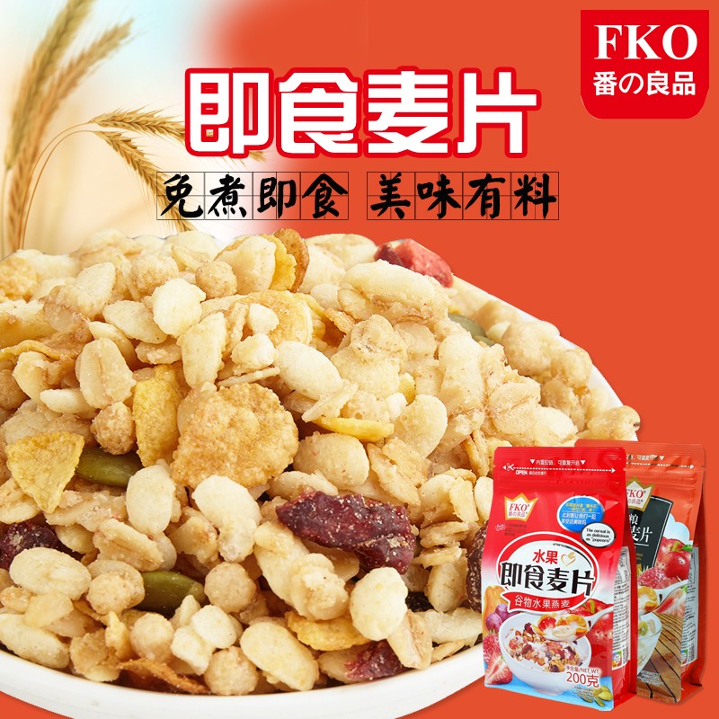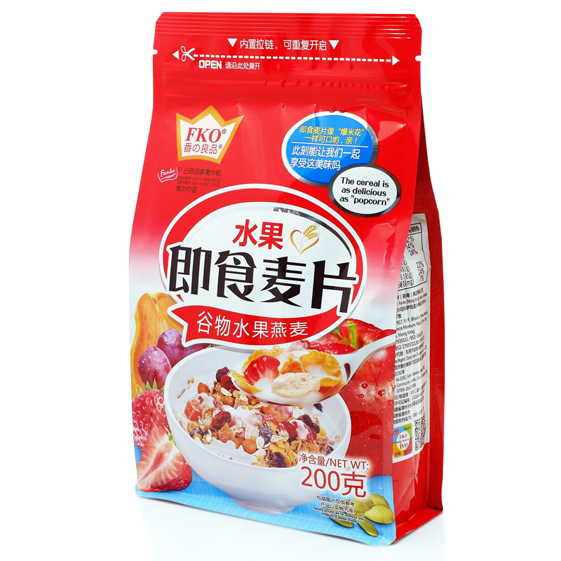 FKO番の良品燕麦水果粗粮即食麦片200克包装,免煮即食,美味有料,悠然麦香与饱满果干的邂逅。富含12种水果谷物,营养健康。