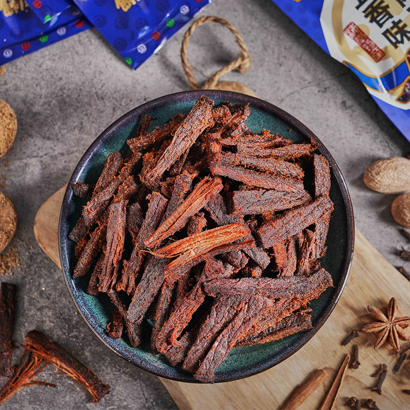 - 产品采用六代传承古法制作技艺融合现代科技加工,制作工艺遵循百年传承,手工炒制,让您吮指留香,意犹未尽。精选新西兰***草饲牛后大腿部位,只为保留牛肉劲道十足的口感,孕育**质的上层美味。
