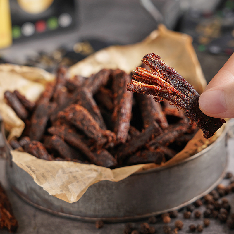 - 产品采用六代传承古法制作技艺融合现代科技加工,制作工艺遵循百年传承,手工炒制,让您吮指留香,意犹未尽。精选新西兰***草饲牛后大腿部位,只为保留牛肉劲道十足的口感,孕育优质的上层美味。