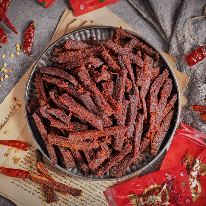 - 产品采用六代传承古法制作技艺融合现代科技加工,制作工艺遵循百年传承,手工炒制,让您吮指留香,意犹未尽。精选新西兰***草饲牛后大腿部位,只为保留牛肉劲道十足的口感,孕育优质的上层美味。