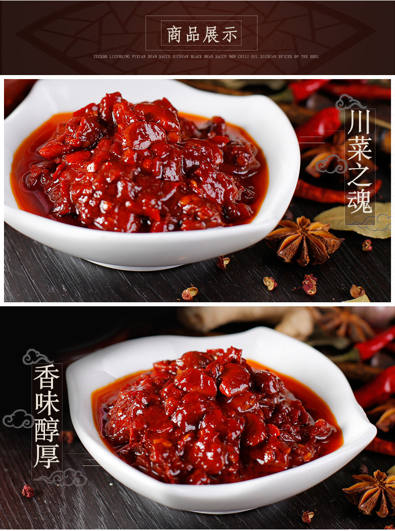 以优质红辣椒为主要原料,经过盐渍制成辣椒醅,蚕豆制曲,酱香宜人唇齿留香,广泛适用于各大菜系。