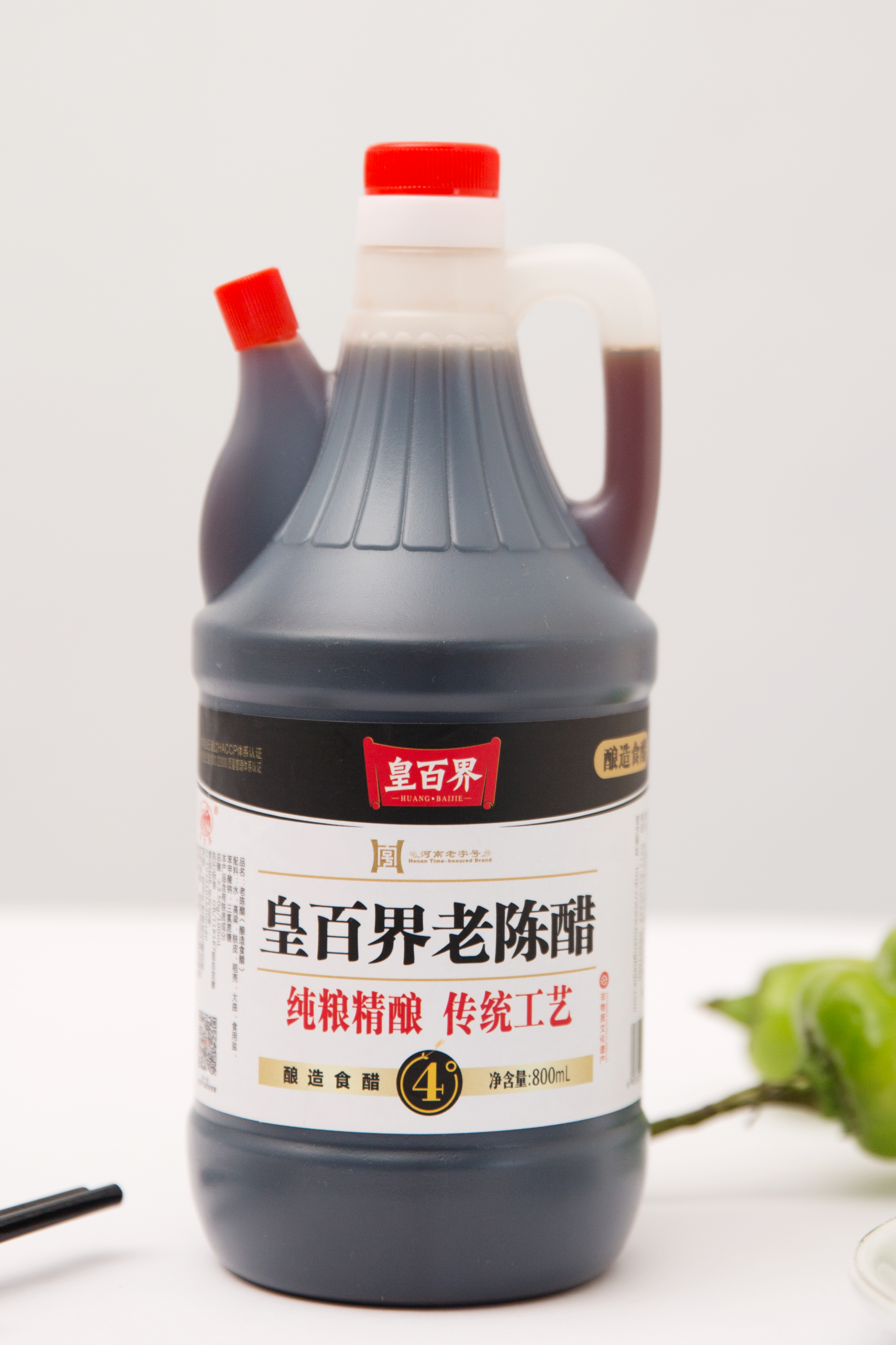 皇百界老陈醋,选用红缨高粱,经传统工艺发酵而成。
