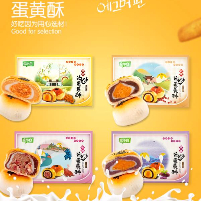 网红爆品,鹭小白蛋黄酥精选红豆蛋黄酥、紫薯蛋黄酥、肉松蛋黄酥等,并创新研发了云腿蛋黄酥,口感表皮香酥、内馅饱满、多层表皮、三层內馅、蛋香浓郁、奶香纯正;包装精美;适合各种年龄消费者多中场合消费;