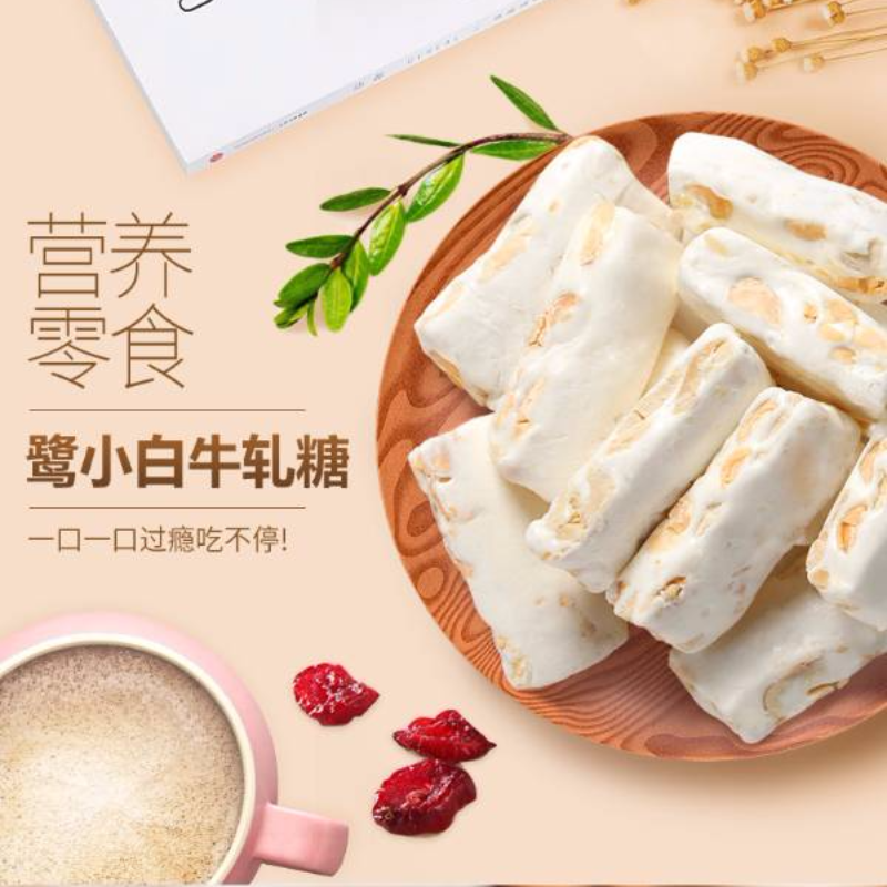 鹭小白牛轧糖,精选原材,采用台湾传统工艺,手工制作而成,分为:蔓越莓牛轧糖、玫瑰牛轧糖、花生牛轧糖、榴莲牛轧糖;口感奶香纯正,不甜不腻,绝不含食用胶,是一颗适合居家、旅行、社交、办公零食的必备健康食品;适合商超、精品零食店、微电商直播等渠道;