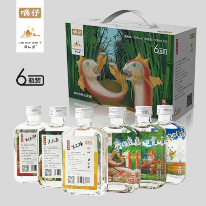 韩仙源依托凤凰山得天独厚的酿造环境,取凤凰山间清泉水与优质大米,酿造出清雅绵柔的嘀仔神兽“刻苦驴”小瓶酒。