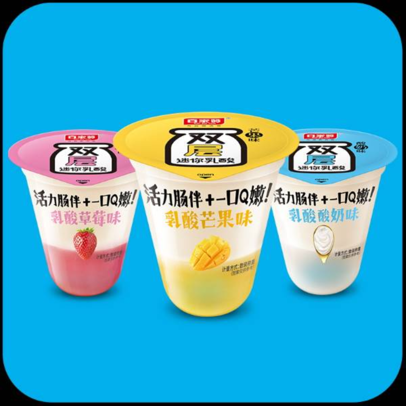 品名:百家赞双层迷你乳酸别名:乳酸小奶杯口味:乳酸酸奶味、乳酸芒果味、乳酸草莓味