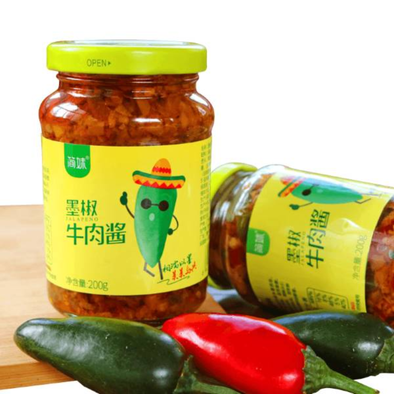 采用墨椒和新鲜牛肉为原材,可以吃到牛肉的辣椒酱.性价比极高