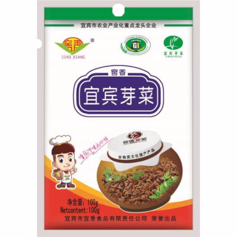 窖香芽菜奉承传统的工艺、以自身的质量、信誉求生存和发展,产品至始至终保持着自身的特色:窖香浓厚、纯真和地道。高端产品“坛装发酵、三腌两窖”是目前宜宾芽菜行业中的传统工艺,此“传统腌制技艺”以成功申请非物质文化遗产。