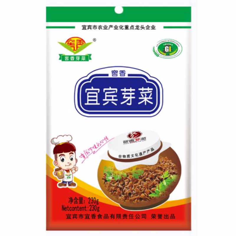 窖香芽菜奉承传统的工艺、以自身的质量、信誉求生存和发展,产品至始至终保持着自身的特色:窖香浓厚、纯真和地道。高端产品“坛装发酵、三腌两窖”是目前宜宾芽菜行业中的传统工艺,此“传统腌制技艺”以成功申请非物质文化遗产。