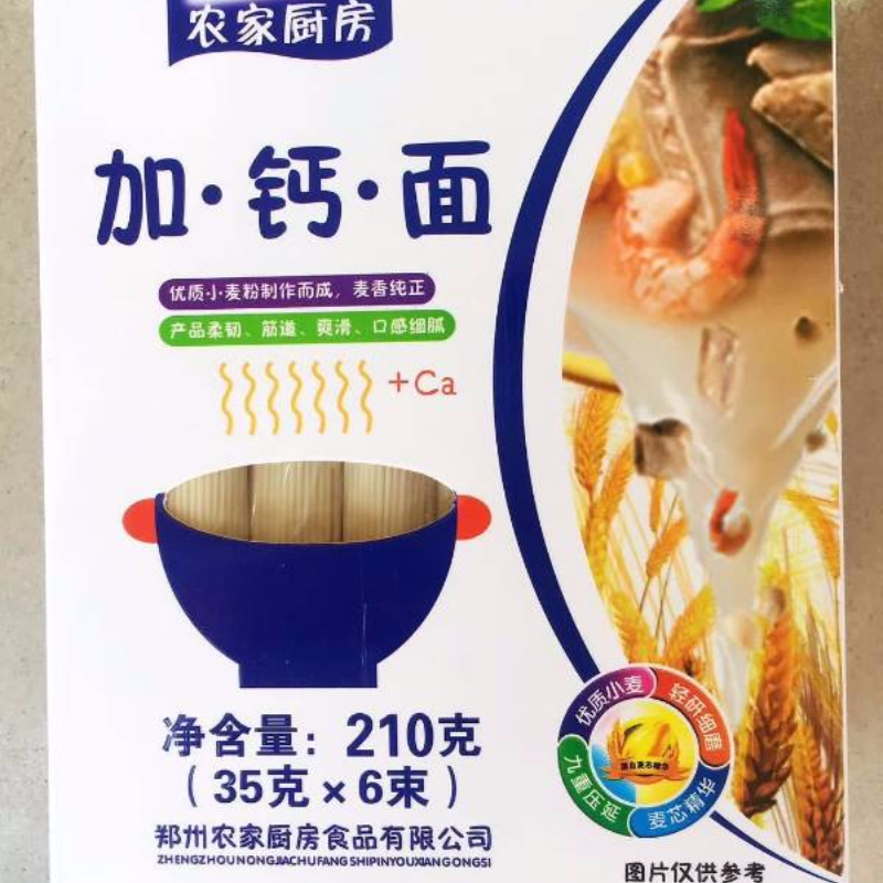 210克*20包加钙面:小麦精华“麦芯粉”制作,添加部分营养元素,面体柔嫩,口感爽滑、细腻