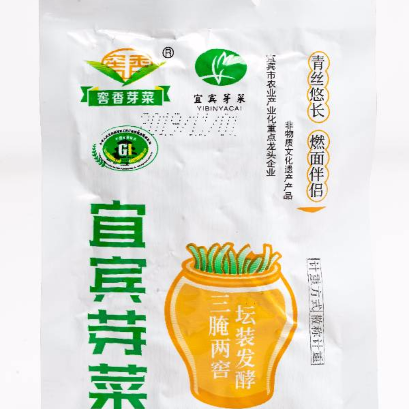 窖香芽菜奉承传统的工艺、以自身的质量、信誉求生存和发展,产品至始至终保持着自身的特色:窖香浓厚、纯真和地道。高端产品“坛装发酵、三腌两窖”是目前宜宾芽菜行业中的传统工艺,此“传统腌制技艺”以成功申请非物质文化遗产。