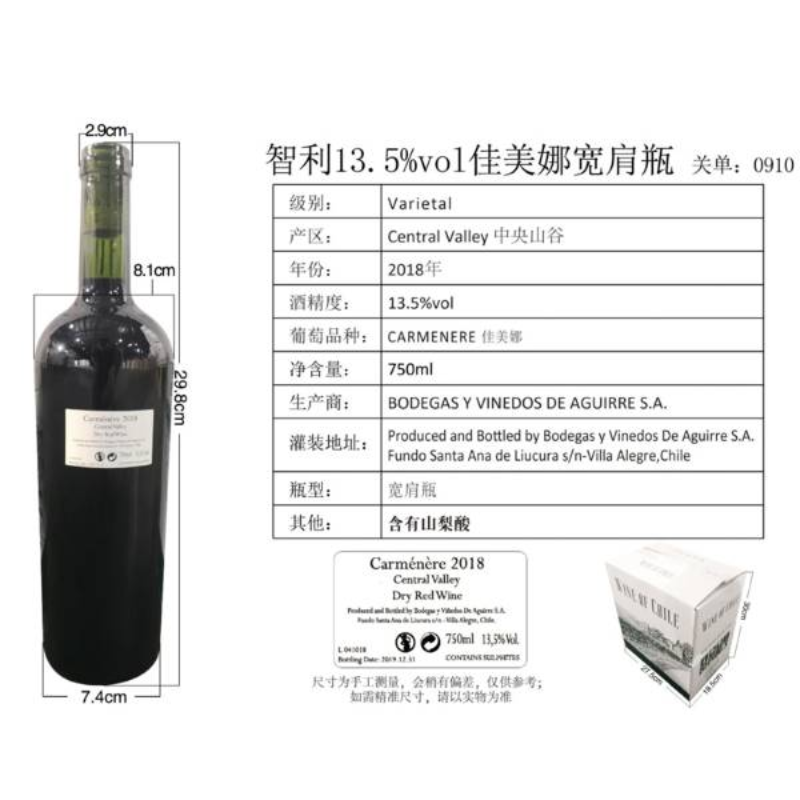 13.5度560g锥形瓶中央山谷单一佳美娜干红