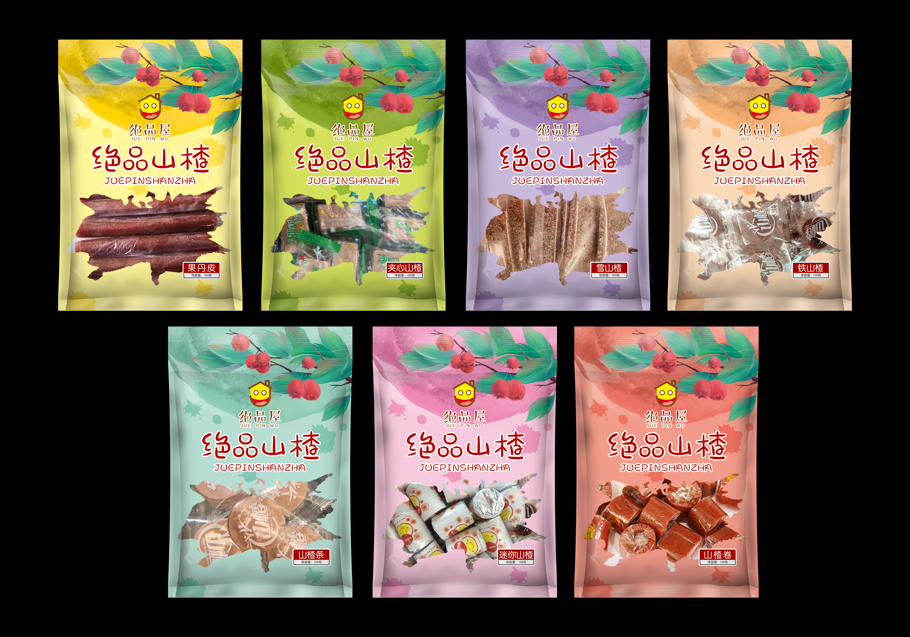 山楂系列有山楂卷、夹心山楂、迷你山楂、山楂片、果丹皮、雪山楂、铁山楂7条码