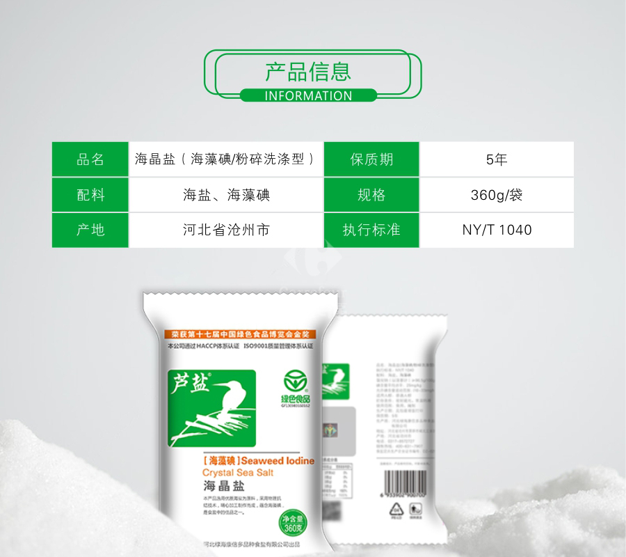 “芦盐”的生产,据史料记载始于西周初期,已有近三千年历史。至今仍沿袭古法,引海水入滩,经寒来暑往、日晒风干自然结晶而成。本产品选用优质“芦盐”为原料。