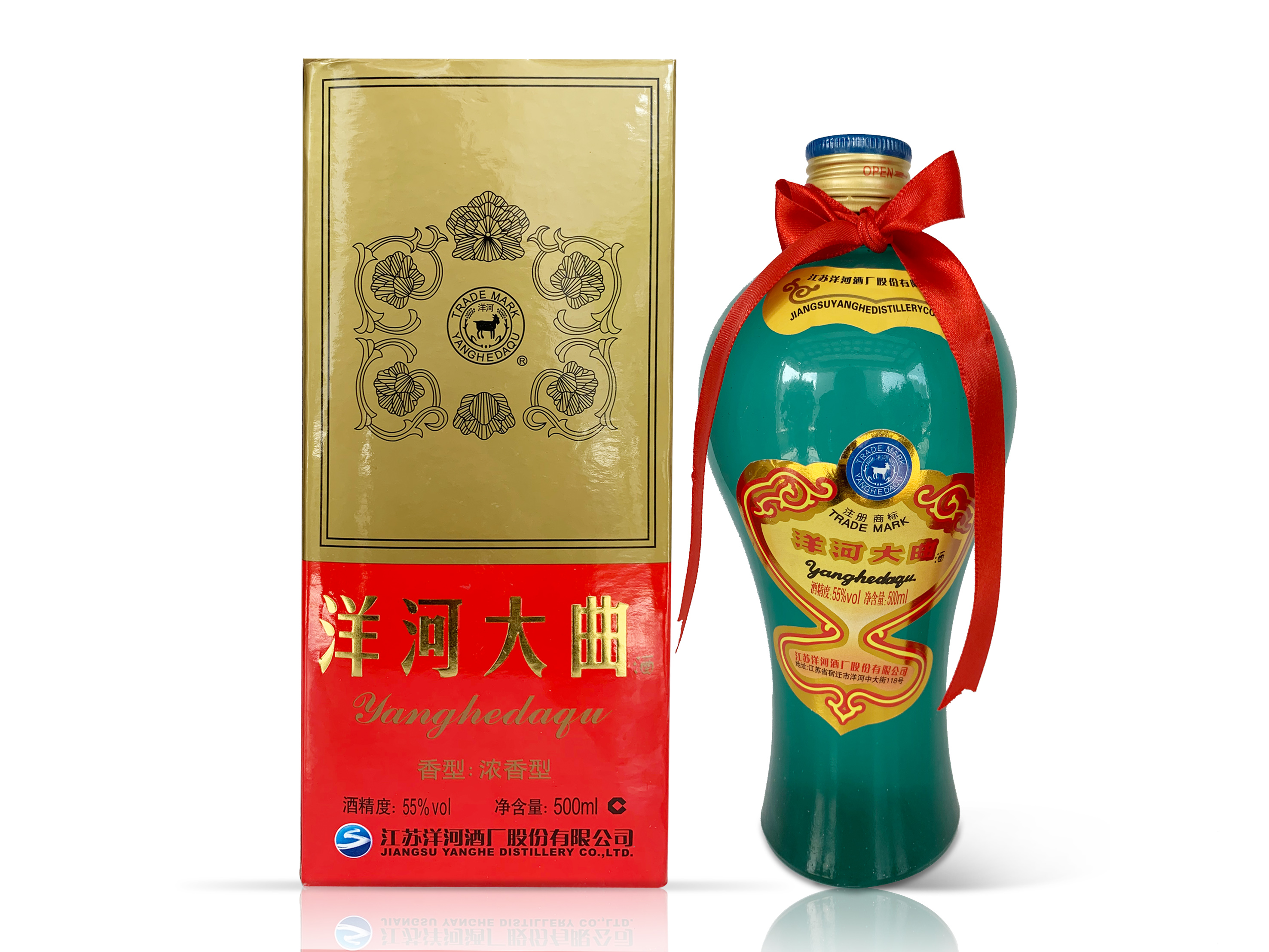 洋河大曲以产地得名,是优质高粱为原料,以小麦、大麦、豌豆制成的高温火曲为发酵剂,辅以闻名遐迩的美人泉水精工酿制而成,运用传统工艺和新技术,使洋河大曲日臻完美,形成了“甜,绵,软,净,香”的风格,被专家和大众誉为浓香型大曲酒的代表。