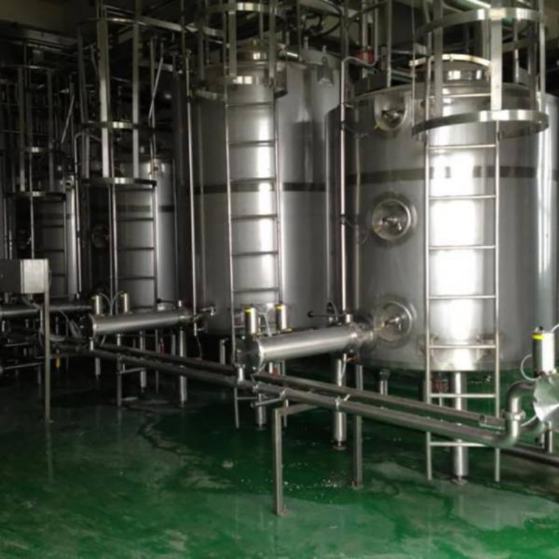果汁饮料生产线包括三部分:水处理部分,果味饮料调配部分,灌装、包装部分。