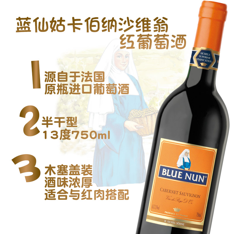 蓝仙姑卡伯纳沙维翁红葡萄酒 半干13度