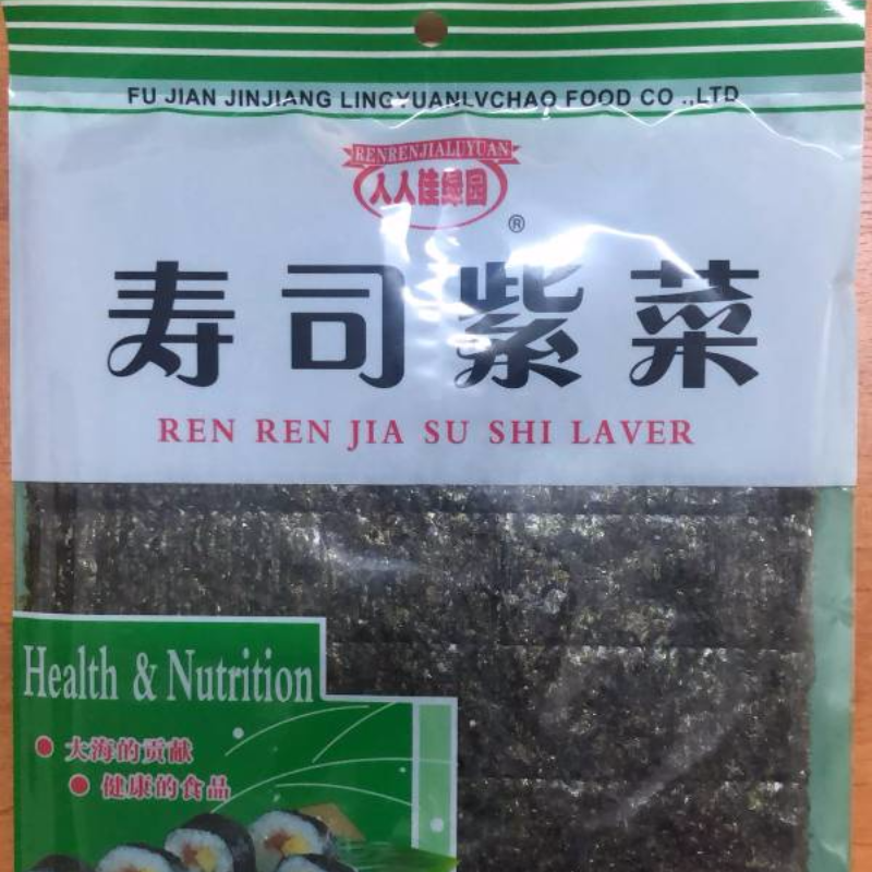24g寿司紫菜,可发带帘和不带帘。一包8片装。