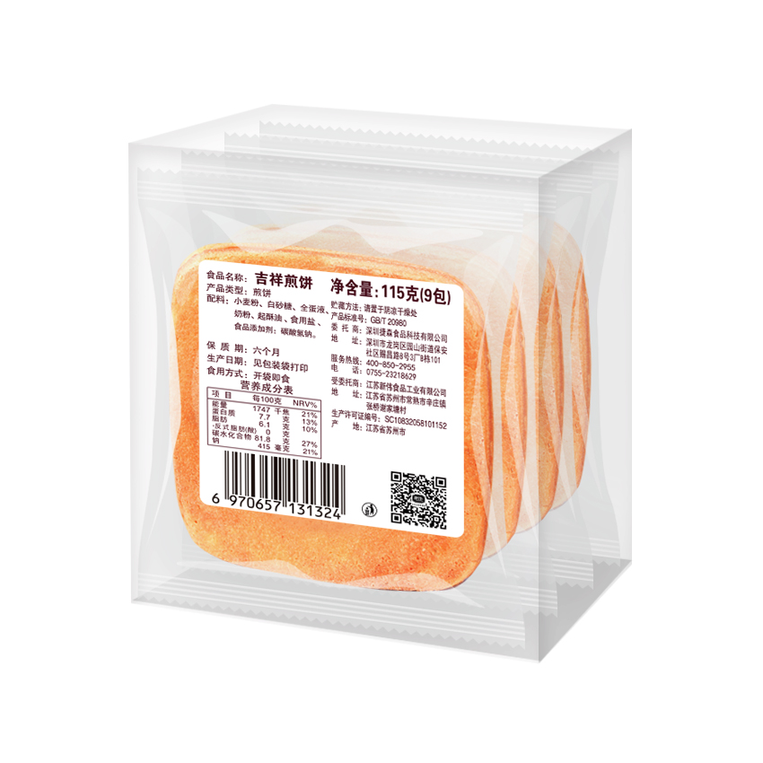 吉祥煎饼,酥香可口,蛋香浓郁,每一块都是独立小包装,方便食用,卫生**,口味好,回味更好