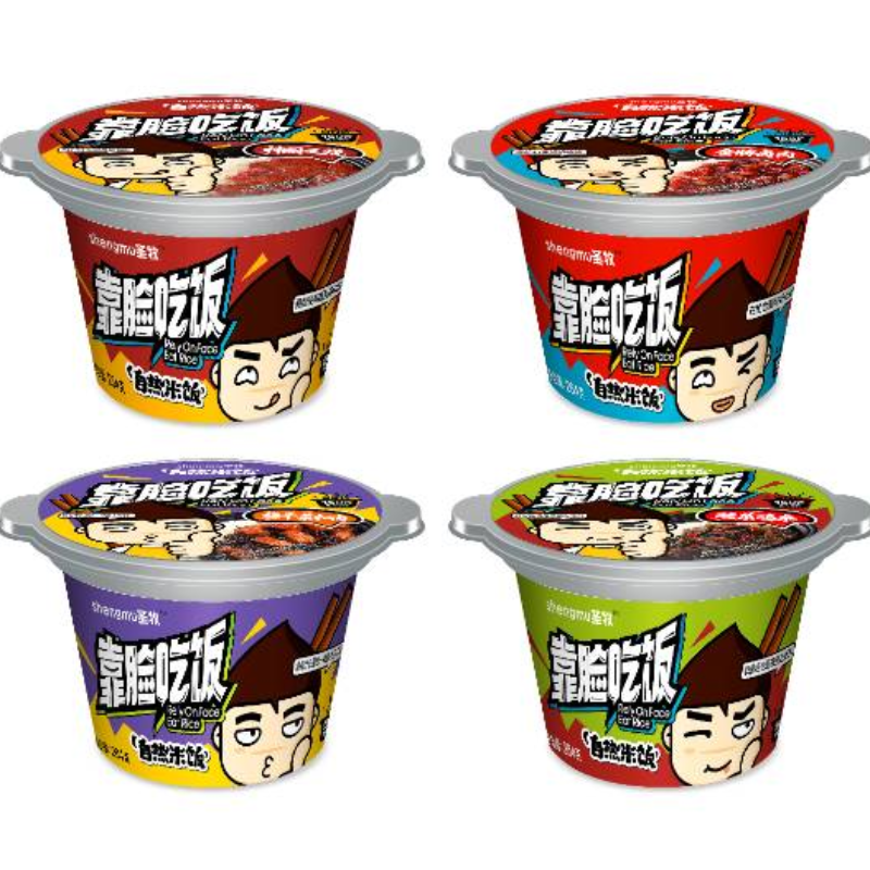 产品介绍:1、圣牧自热米饭推出金牌卤肉、厨神叉烧、酸菜鸡杂、梅干菜扣肉等口味;建议零售价9.9 元/桶