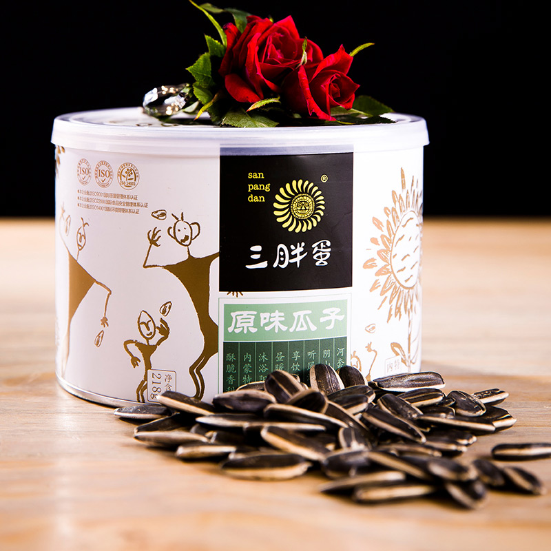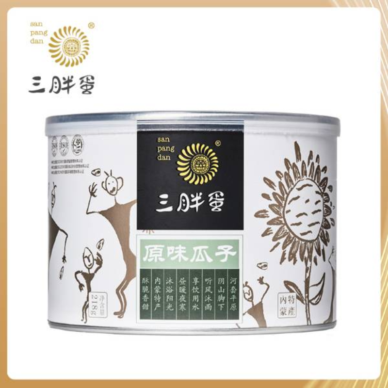 以“香”闻名于世的小白罐,外壳光滑干净,入口醇厚回甘,香而不腻,香久益清,真空包装,久藏不坏,三胖蛋爆品拳头产品,中国每卖出三罐瓜子就有两罐是三胖蛋小白罐,是三胖蛋的明星产品,小白罐奠定了三胖蛋在原味瓜子界的地位