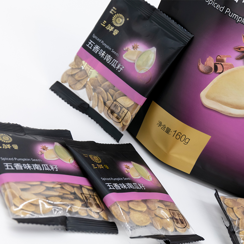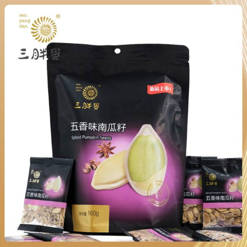 五味好料文火炒制,表皮酥脆金黄,香气四溢,不是所有南瓜子都叫三胖蛋五香南瓜子,三胖蛋五香南瓜子,*有辨识度的南瓜子