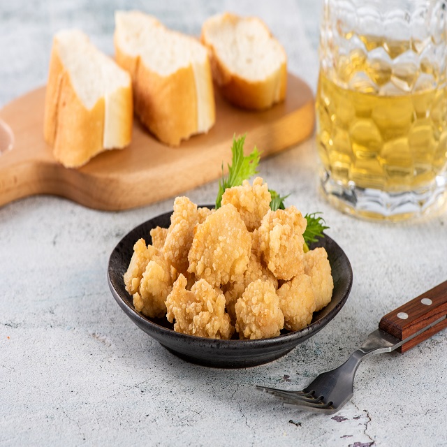 色泽金黄,口味丰富,大块肉丁,肉质鲜嫩多汁。