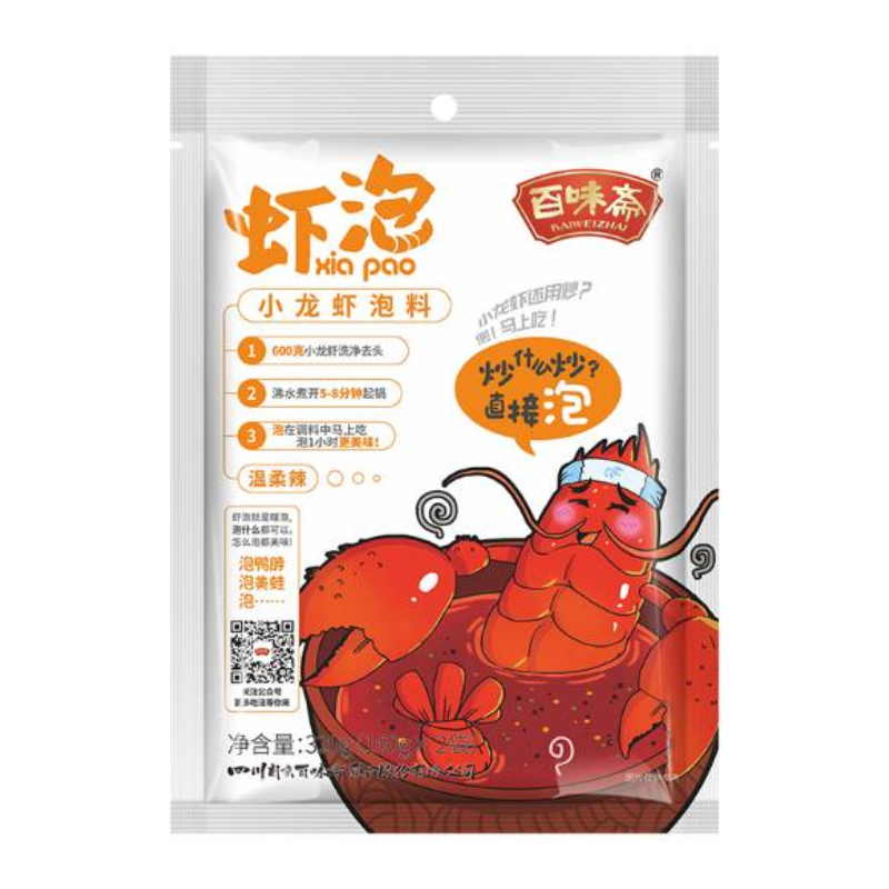选材精良,严苛的制作工艺,标准化的生产流程,精准量化各种原材料配比,确保每一包虾泡料的香辣口感,燃爆味蕾,全能型调味品,花甲扇贝、泡兔头、泡素菜、等等,方便快捷。
