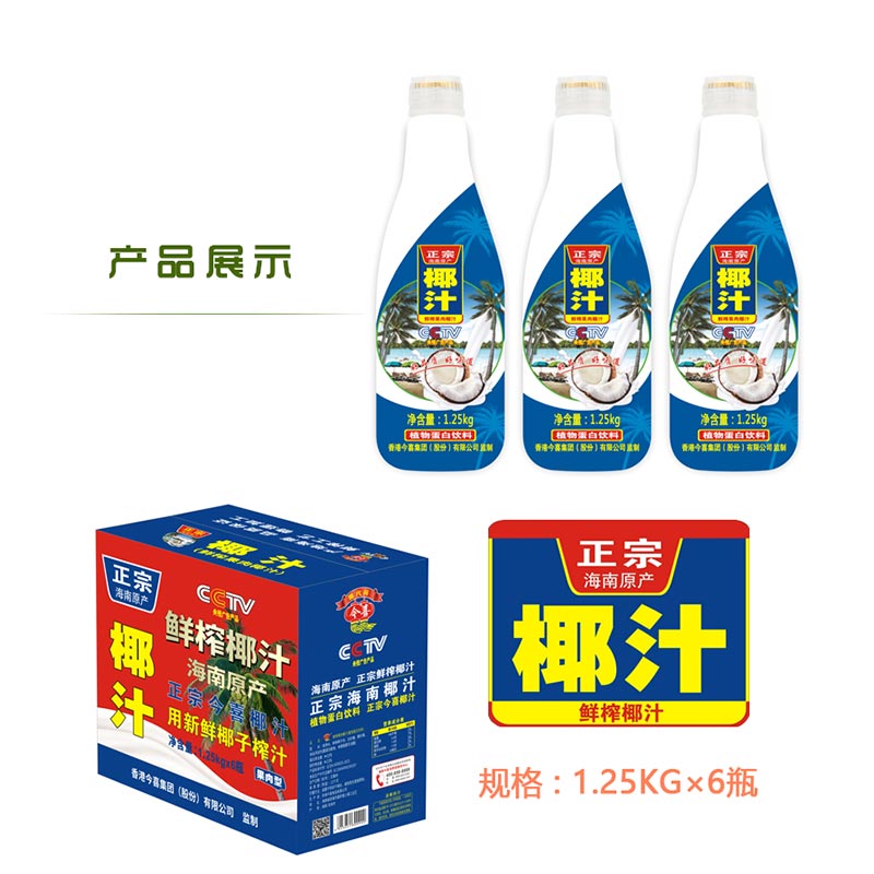 今喜源代码鲜榨椰汁源自正宗产地海南岛,精选优质椰子果。椰子果经过充足的阳光沐浴,肥沃土地的滋养酝酿,营养丰富,口感细腻。从新鲜的椰子果取肉、榨汁、生产、灌装,整个生产流程采用现代工艺技术,以较短时间确保果汁新鲜纯美。产品坚持不加色素、不加甜味剂、不加防腐剂!