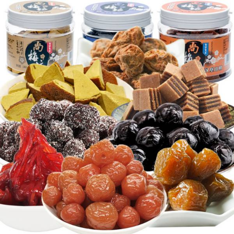 高灌蜜饯凉果果干果脯、山楂条、雪花杨梅、酸口梅、西梅果干、乌梅、桃粒、佛手果