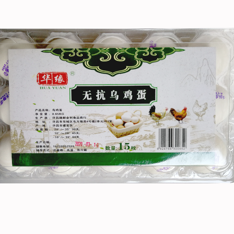 华缘乌鸡蛋15枚透明盒装
