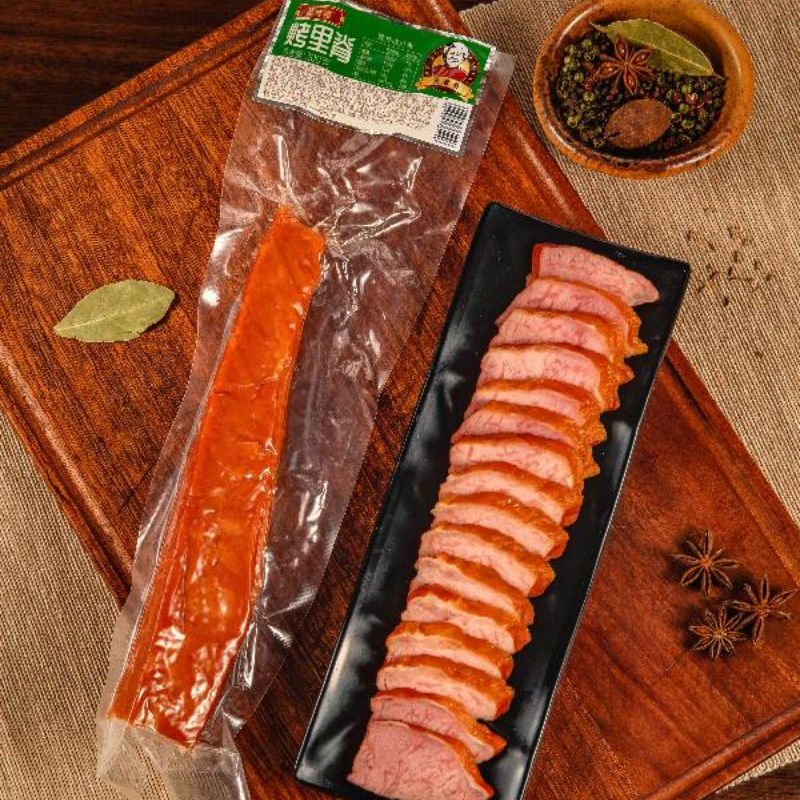 采用新鲜的猪里脊肉秘制而成,果木熏烤,口感细腻,营养丰富,蛋白质含量高。