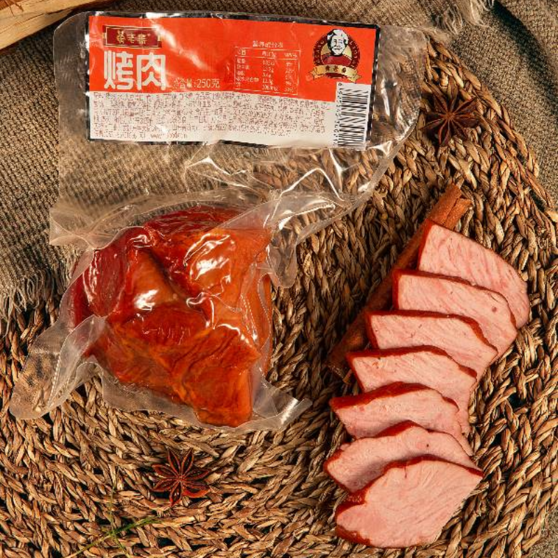 采用新鲜的猪后腿肉加工而成,经果木熏烤,营养丰富,色香味俱佳。