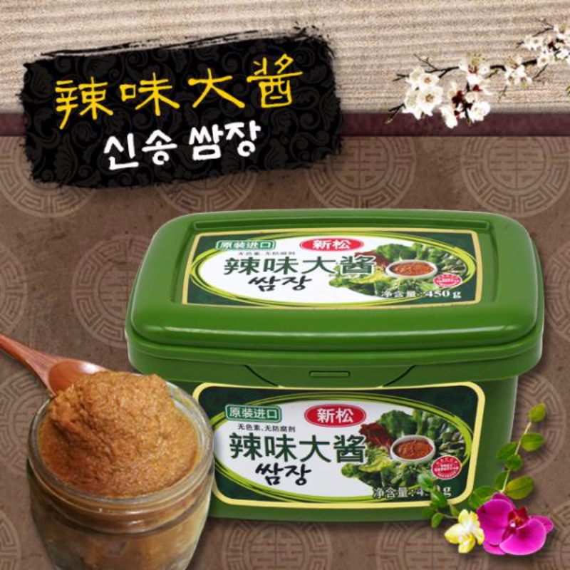 新松辣味大酱口感微辣,是韩国烤肉的 主要蘸酱,产品是韩国原装进口的,可以不出国门就体验到韩国的美味
