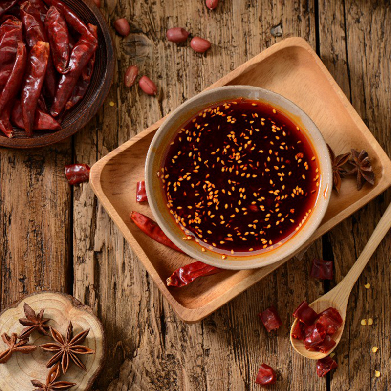 开盖瞬间释放香辣,具有丰富的味觉层次,香辣余味绵长,微辣鲜香,辣而不燥,可拌凉菜,拌面蘸料,应用于各种烹饪。
