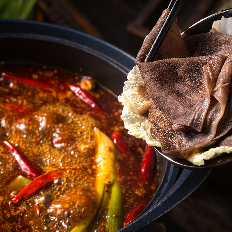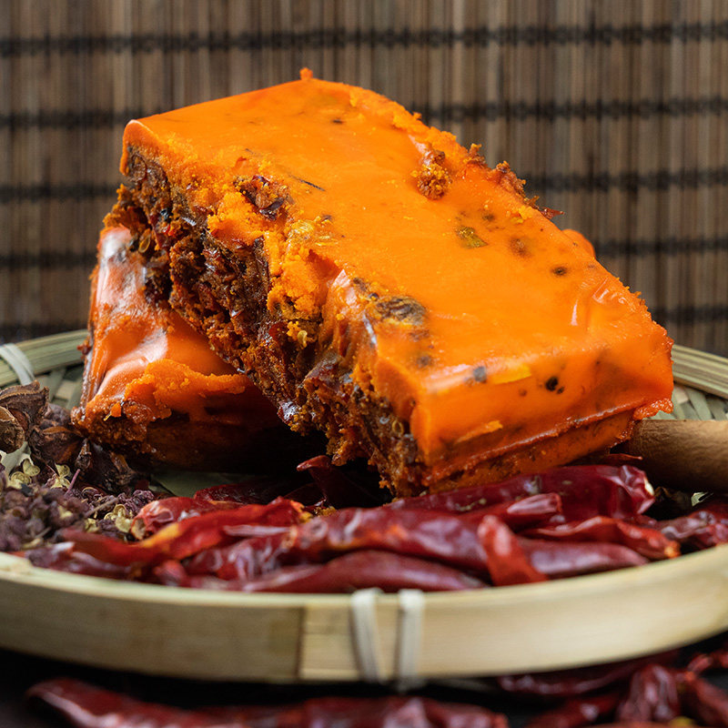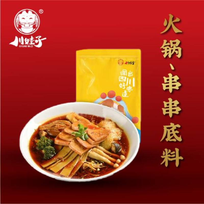 川娃子二十年以来已服务10000+线下火锅店,原汁原味的重庆老火锅牛油味,保持始终如一的口感,实体店每天消费50000斤。醇正牛油,真材实料,经过8小时熬煮,汉源花椒的麻与大红袍辣椒的辣产生碰撞,再与其余数十味香料融合,厚重、醇香、浓烈都浓缩在这一块牛油底料里。