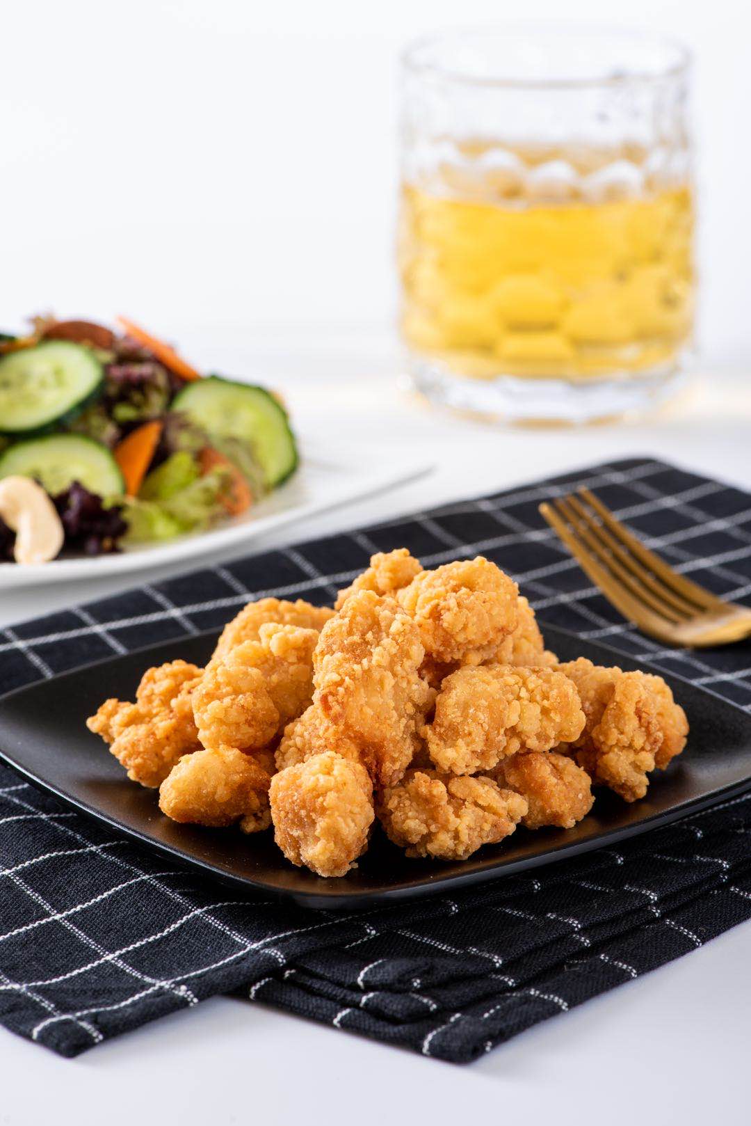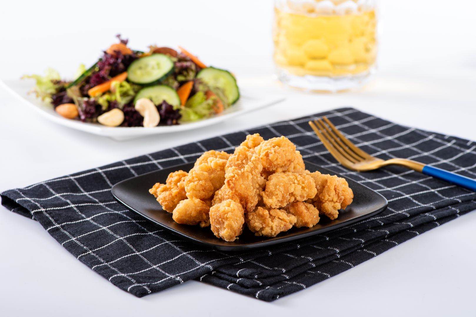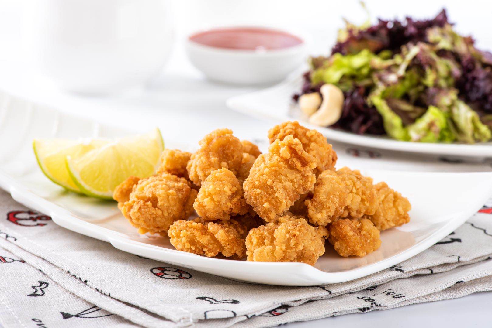 精选鸡胸肉切丁,肉块大,精心调配腌料和裹粉,味道鲜美,口感酥脆爽口,肉质细嫩多汁,外酥里嫩,成品色泽雪白,炸后金黄美观。