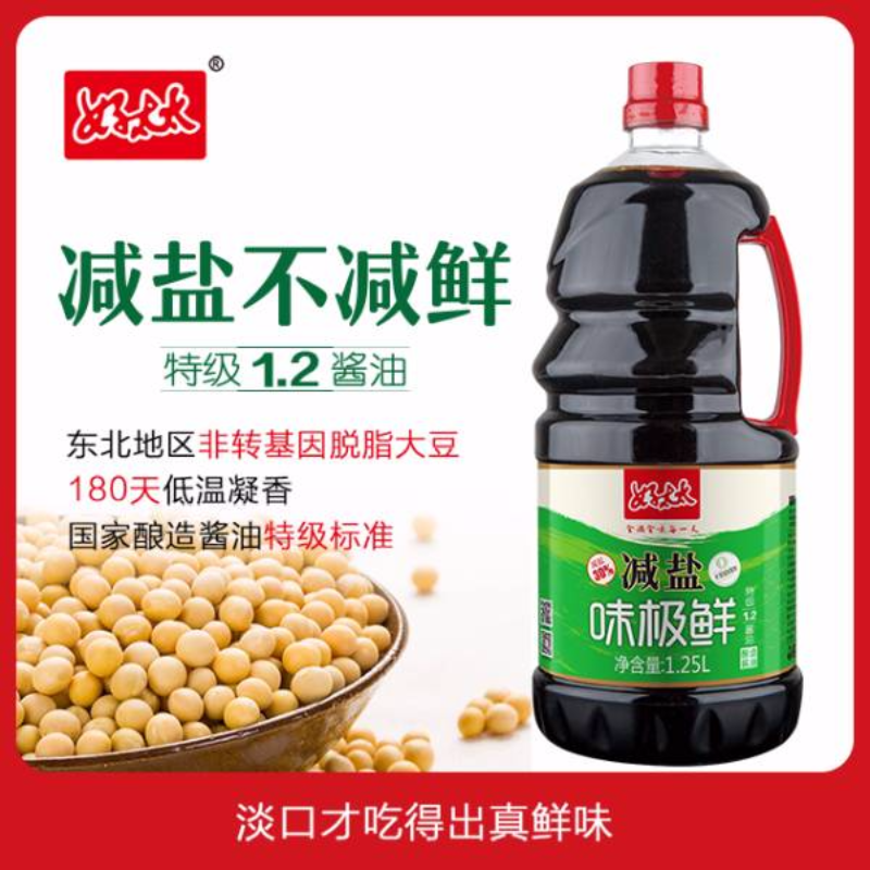 “好太太减盐味极鲜 减盐不减鲜”,“健康好生活,减盐不减鲜”,“***防腐剂”“减盐30%”,“氨氮含量1.2”。