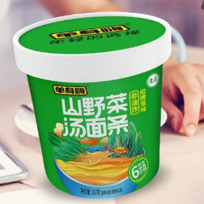 采用非油炸面体,用高汤精炖,在加上美味的山野菜,让你不出门就可以体验到绿色、健康、美味的山野菜汤面条。