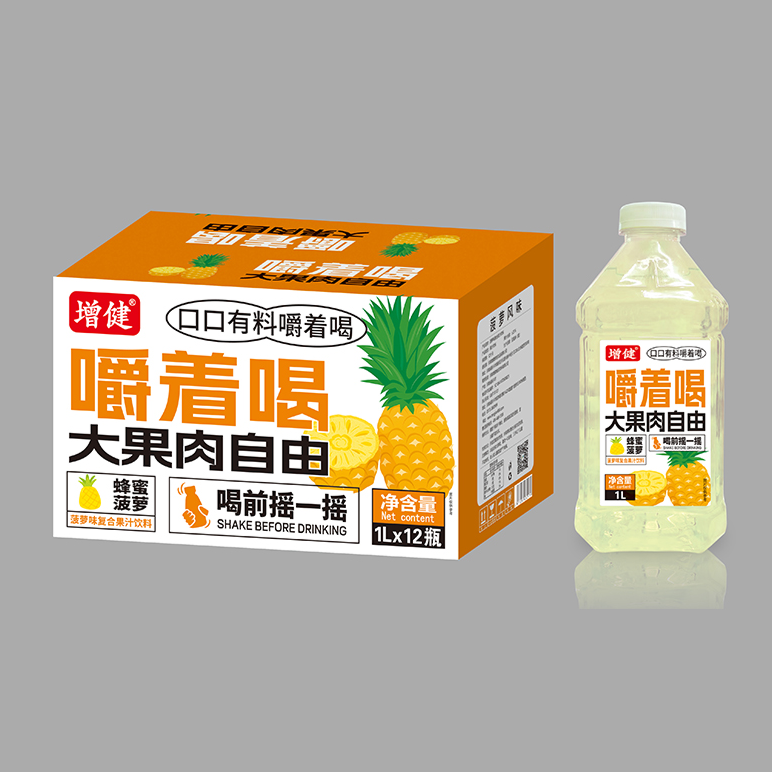 产品采用PET全透明包装,大颗果肉透明可见,果感十分诱人。增健大果肉哆哆,采用果肉+果汁的组合,果汁含量25%。入口口感细腻,果香醇正,回味清甜,大瓶装,大容量,经济实惠,更贴切大众消费理念。