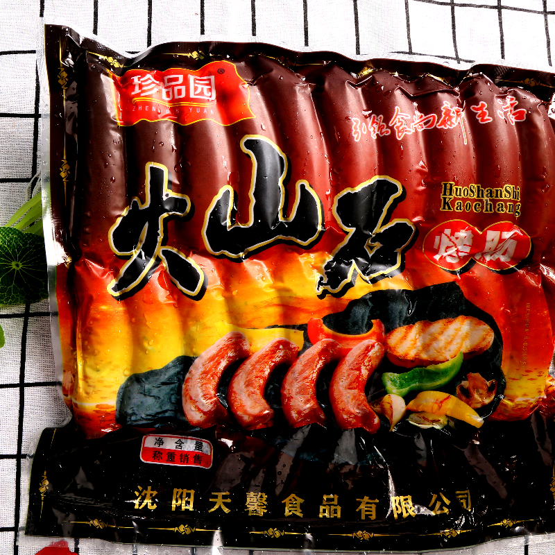 火山石纯肉肠有两个口味,分别是原味和黑胡椒味