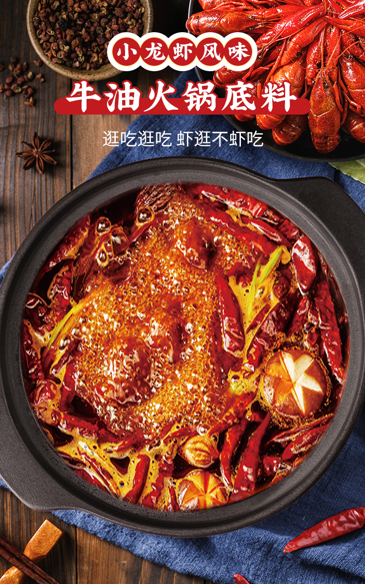 锅小川小龙虾风味火锅底料锅小川一直在研发创意味型牛油火锅底料