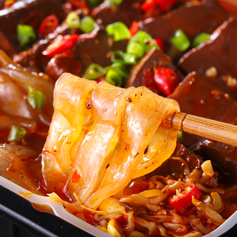 巴食亿毛血旺牛油味。大片肠,麻辣烫