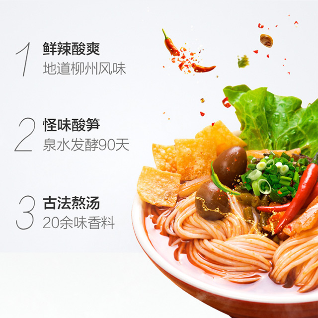 正宗柳州原产地;自有原材料种植基地;螺蛳粉技术研发中心出品;全国主食加工业示范企业出品(国家农业农村部颁发);单品年销售额3亿元。