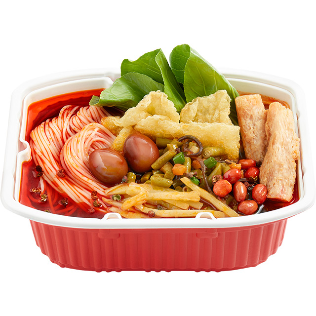 自热产品热潮下的又一爆款,我司在线下市场上架后反馈热烈,北京盒马鲜生十几家门店月销近300箱。在北方地区极受欢迎,发热包加热,食用简单方便,无需烹煮,加水等待18分钟即可开盖食用。食用场景广泛,旅途动车、公司午餐、加班夜宵等在众多以川辣口味为主的自热产品中脱颖,且性价比也较高(其他自热产品30